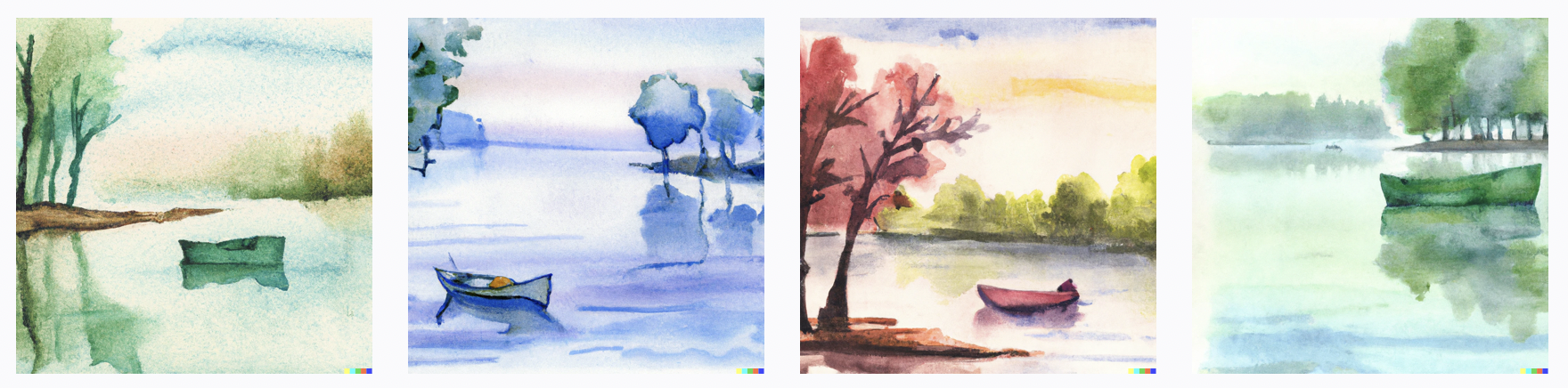 If you’re like me, then you probably have also been wondering how your art fits into a future alongside aggressive advancements in AI technology. More and more artists are coming out about their fears and concerns. There’s also an issue with stealing when AI generated art is created. The algorithm takes from what it has sourced online. Right now platforms such as ChatGPT only have the 2021 internet to resource. Yet, many artists are finding that their art has been stolen by the AI machine to create something for someone else. This type of modular creation takes inspiration from already existent art. This is problematic on many levels. You can see in the watercolor painting above that I made using DALL-E that it is capable of creating a watercolor style painting. When I asked it to generate the painting, it created 4 different variations and all in primary colors.