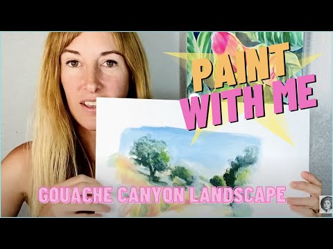 Canyon Gouache Painting: Trails, Trees, and Blue Sky