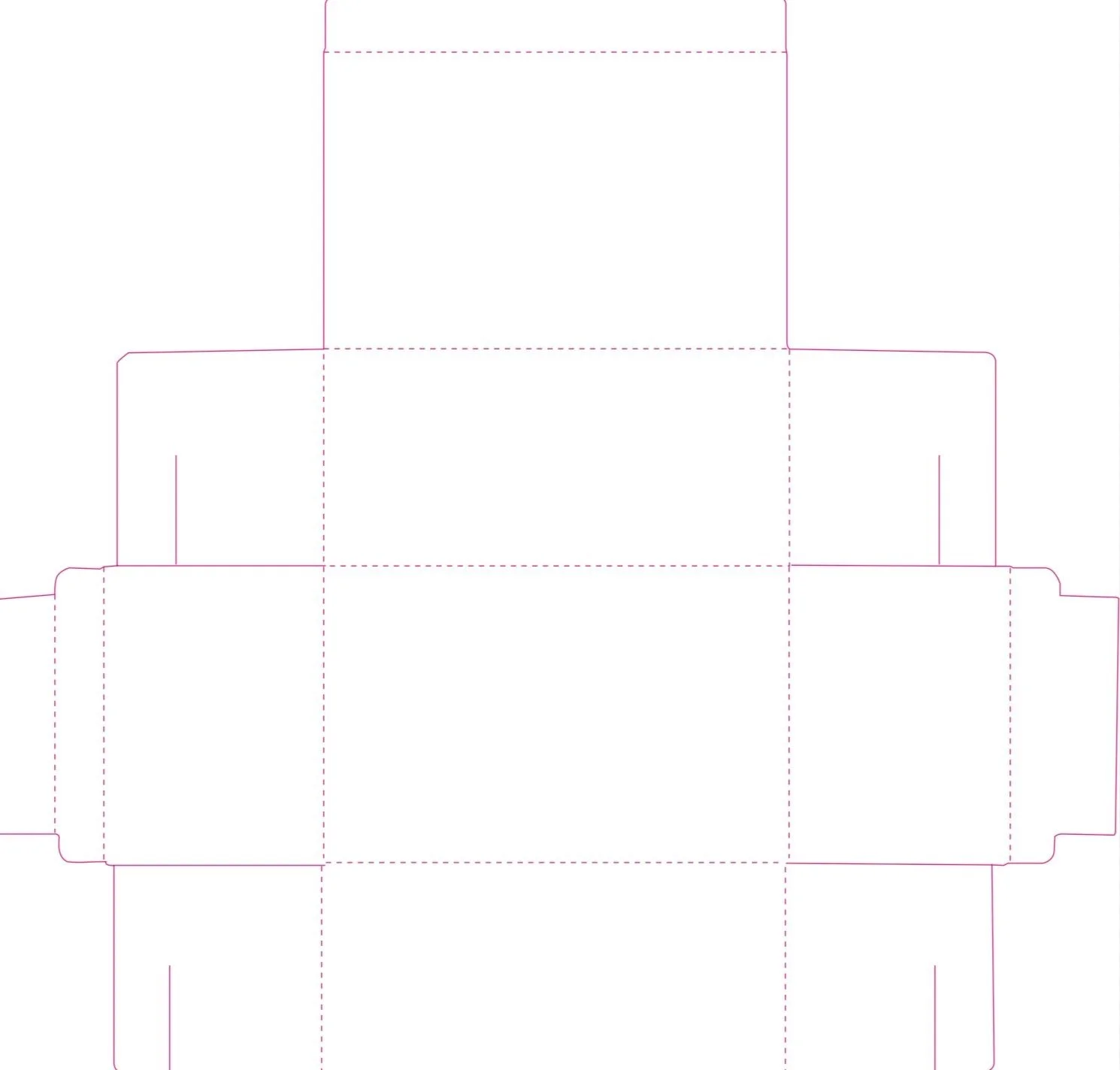 The dieline is the shape of the product packaging. If you’re working on the packaging for a product then it might be a box, a bag, or a label. Regardless, this box or bag exists as line art in an Illustrator file. Typically packaging looks like flattened line art showing the panels in an exploded view. The dieline will look flat in illustrator and you can drop your art into the areas of the artboard to see how your design will look.