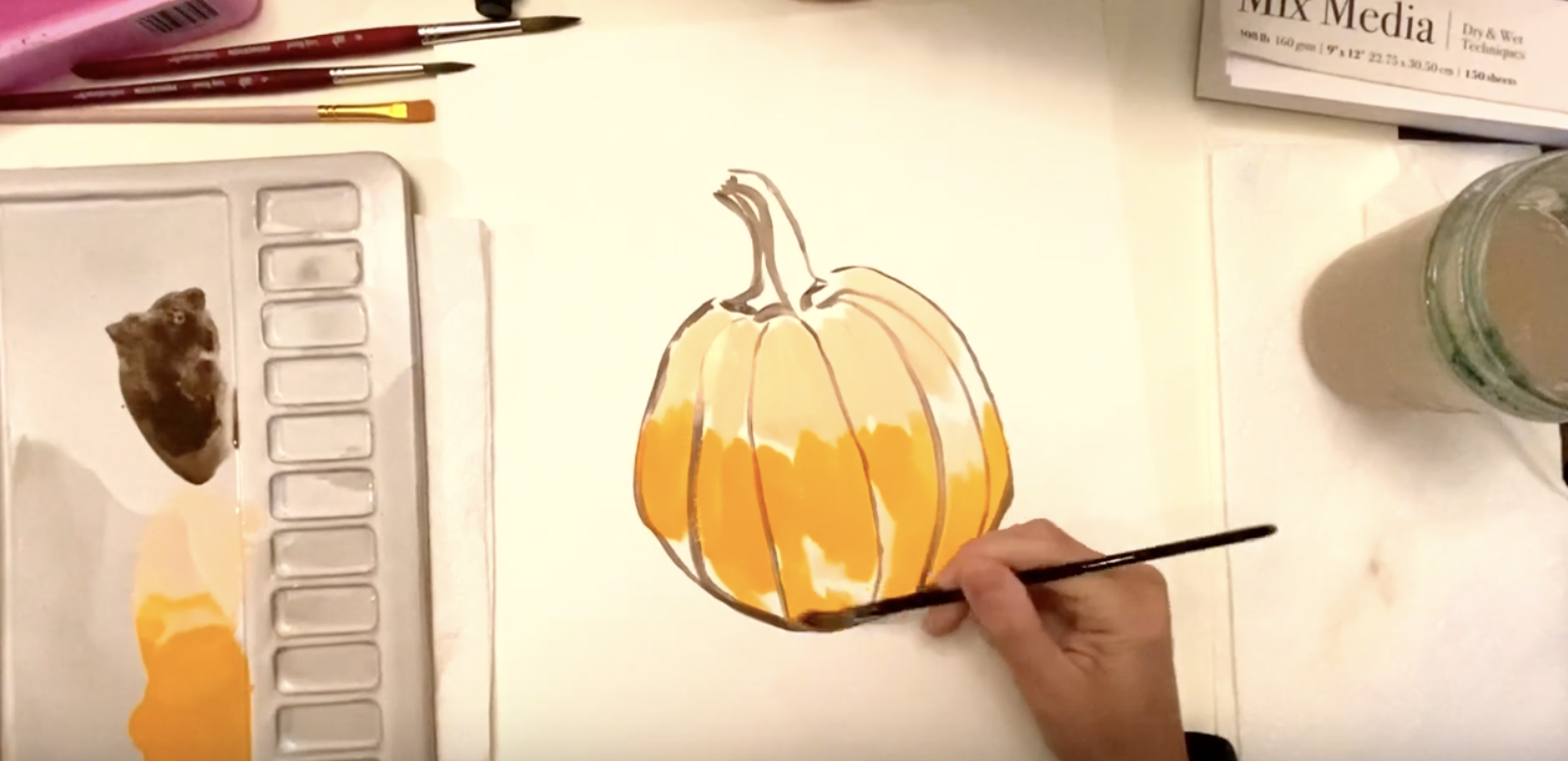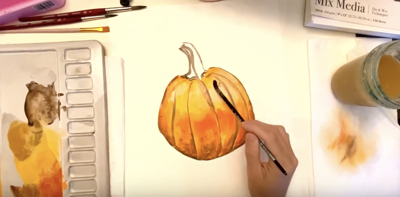 How to Paint a Pumpkin Beginner Gouache & Watercolor Step by Step